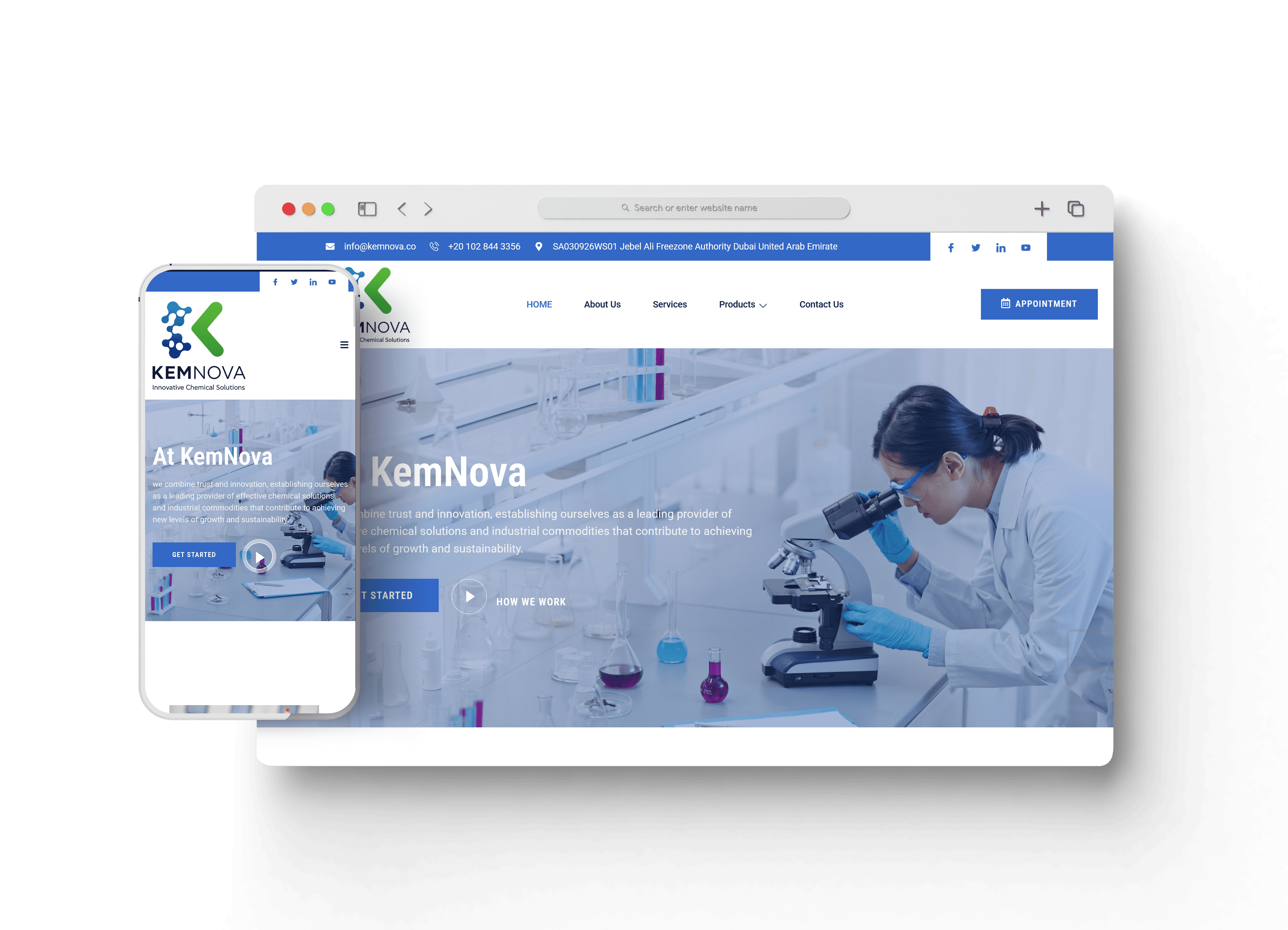 موقع KemNova هو منصة رقمية لشركة متخصصة في تقديم منتجات كيماوية مبتكرة ومستدامة تخدم قطاعات صناعية متعددة.