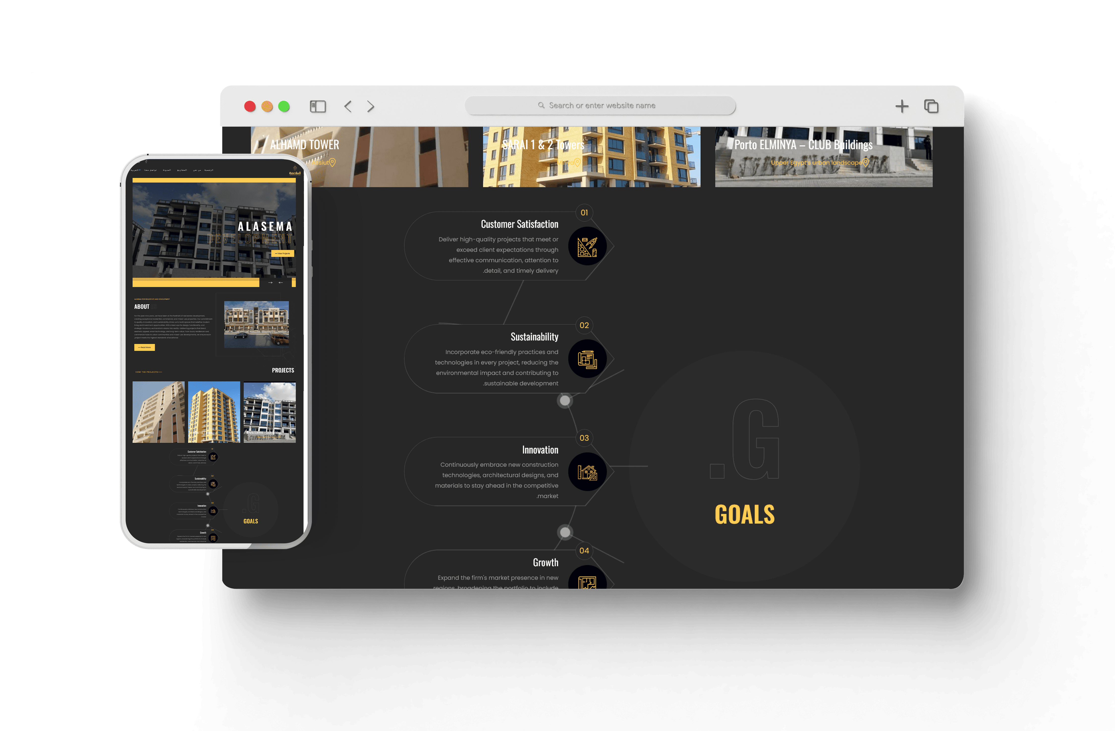 تصميم واجهة مستخدم جذابة تعكس هوية الشركة وتنوع مشاريعها.