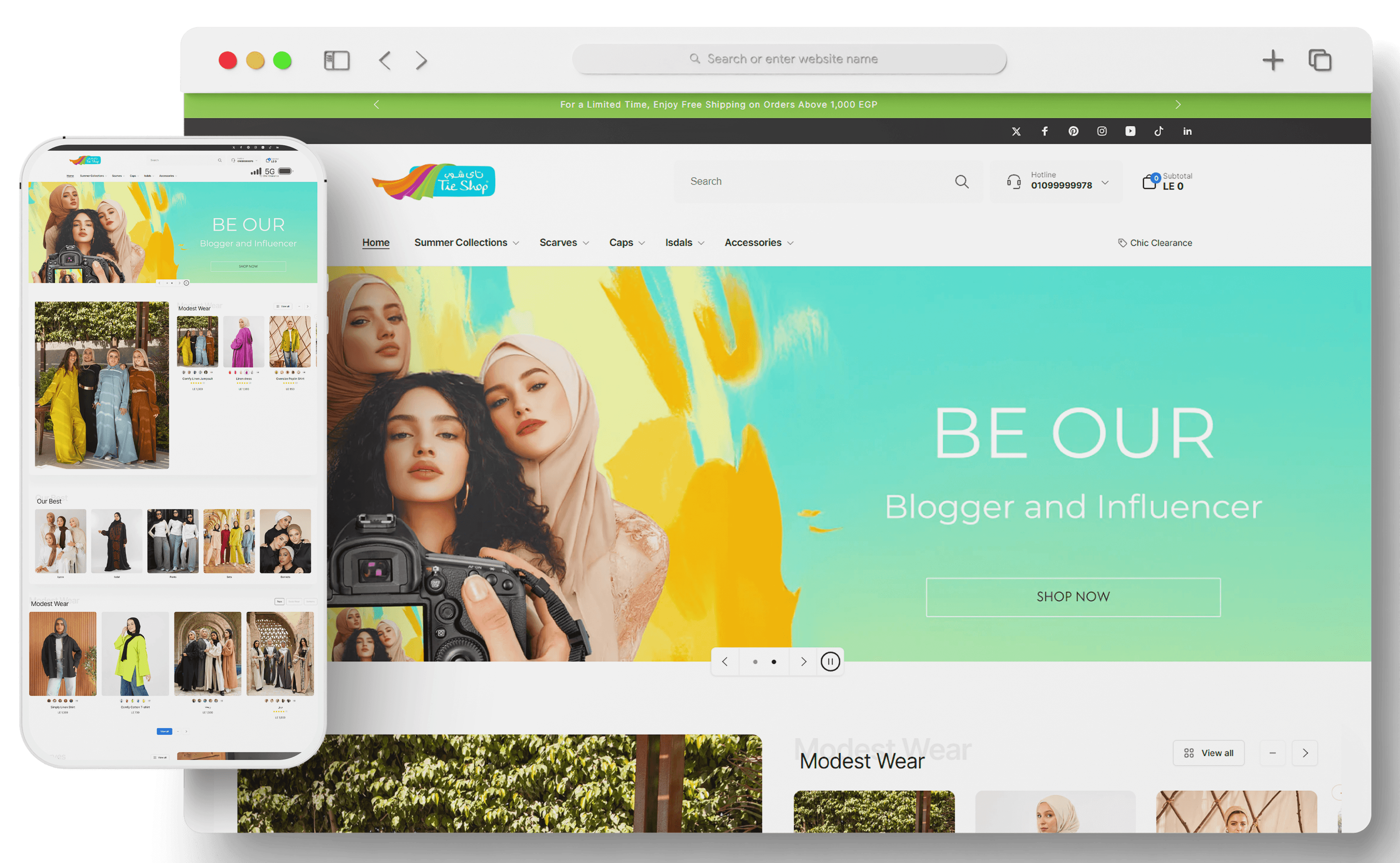 كان التحدي هو تصميم متجر يعكس الذوق النسائي العصري مع واجهة جذابة ومنظمة، تُبرز تشكيلة الملابس وتسهل على العميلات التنقل بين الأقسام، مع ضمان استجابة سريعة وتجربة تسوق مريحة من الجوال أو الكمبيوتر.