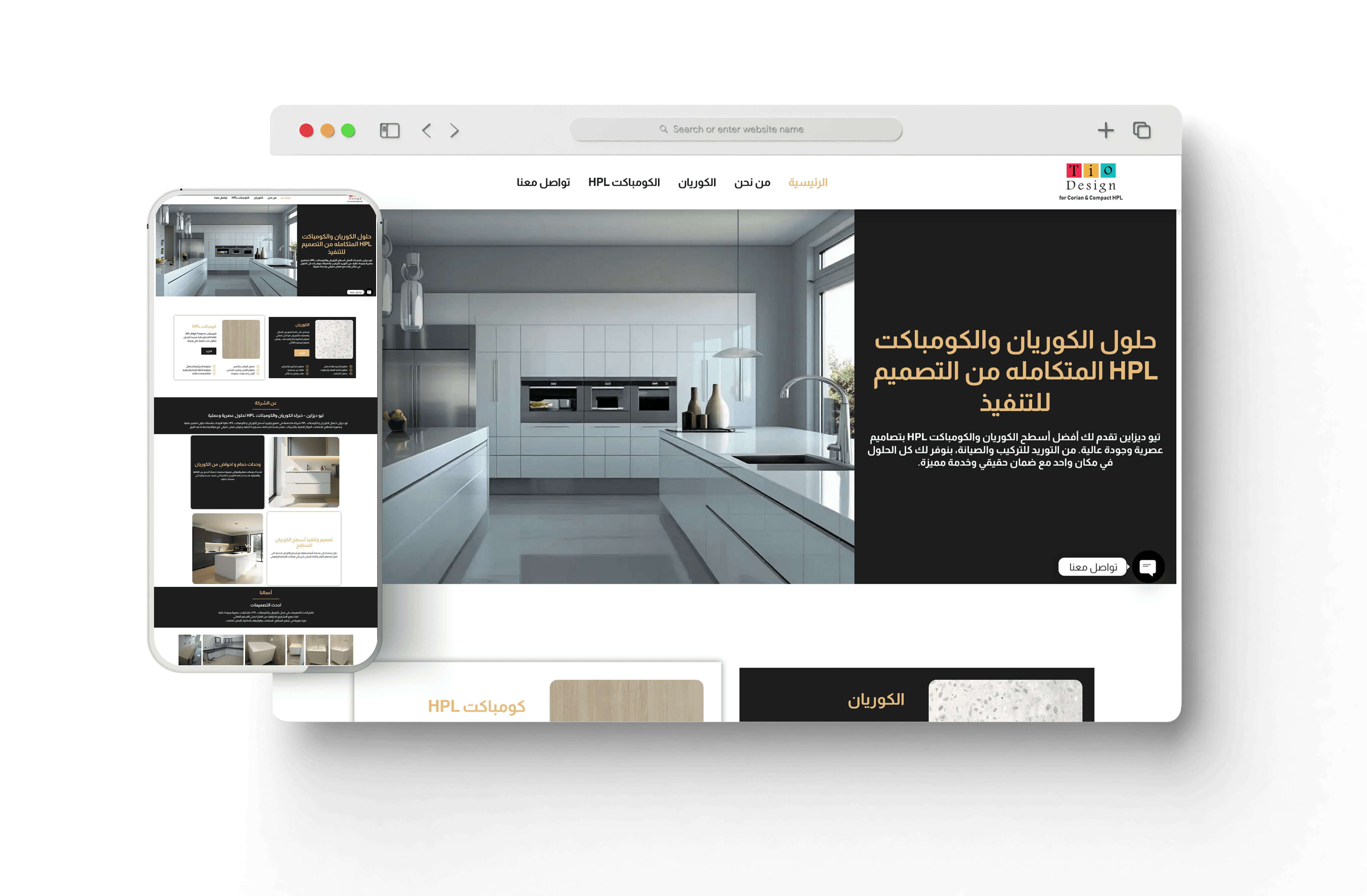 أصبح الموقع يعكس جودة TioDesign كمؤسسة جديرة بالثقة في الكوريان والكومباكت HPL.