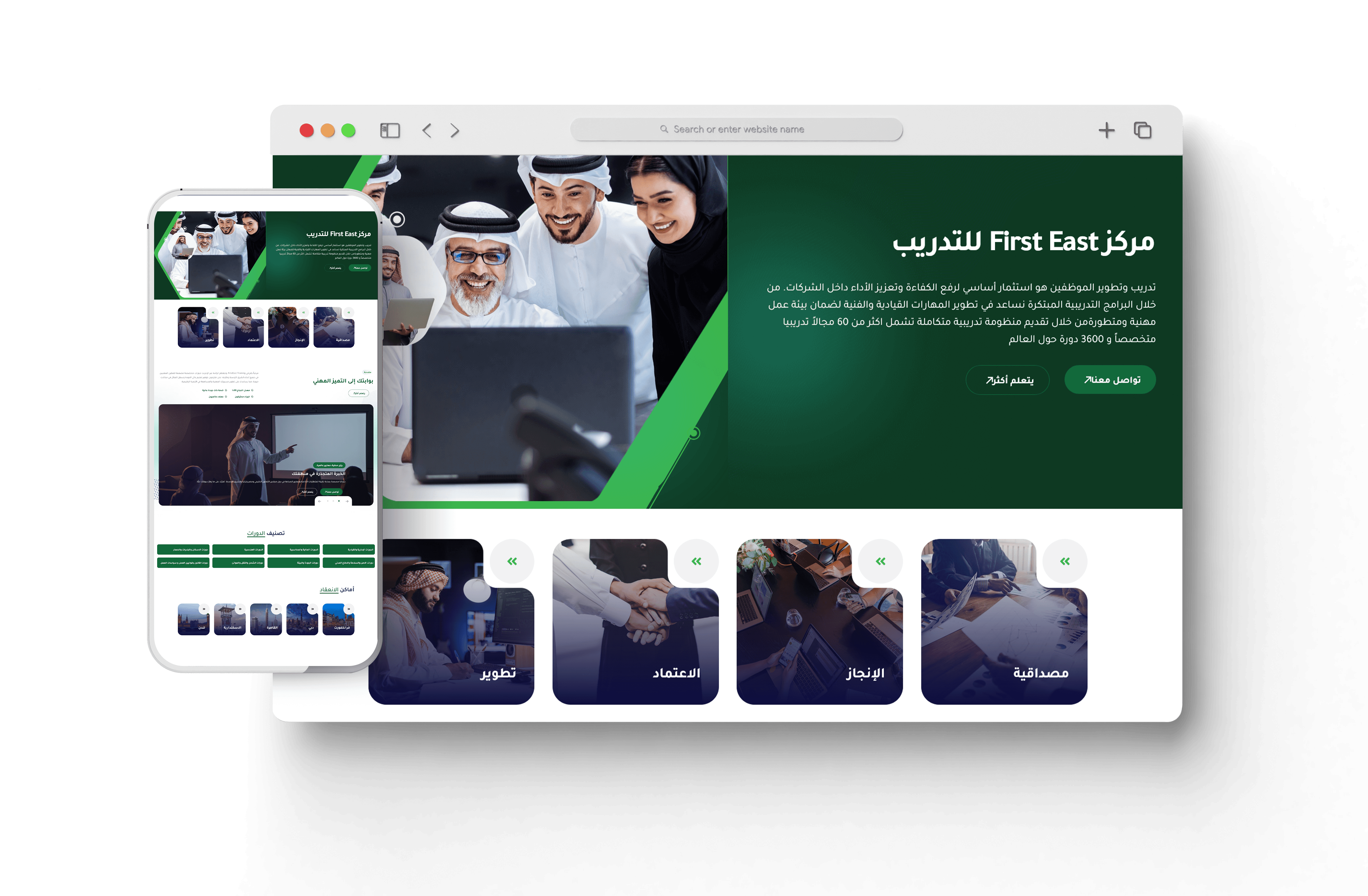عمل فريق قيمة تك مع إدارة First East لفهم احتياجات العملاء التدريبية. تم اختيار ألوان وتصميمات تعكس الاحترافية، مع مراجعة كل مرحلة لضمان تقديم تجربة رقمية تدعم أهداف المركز.