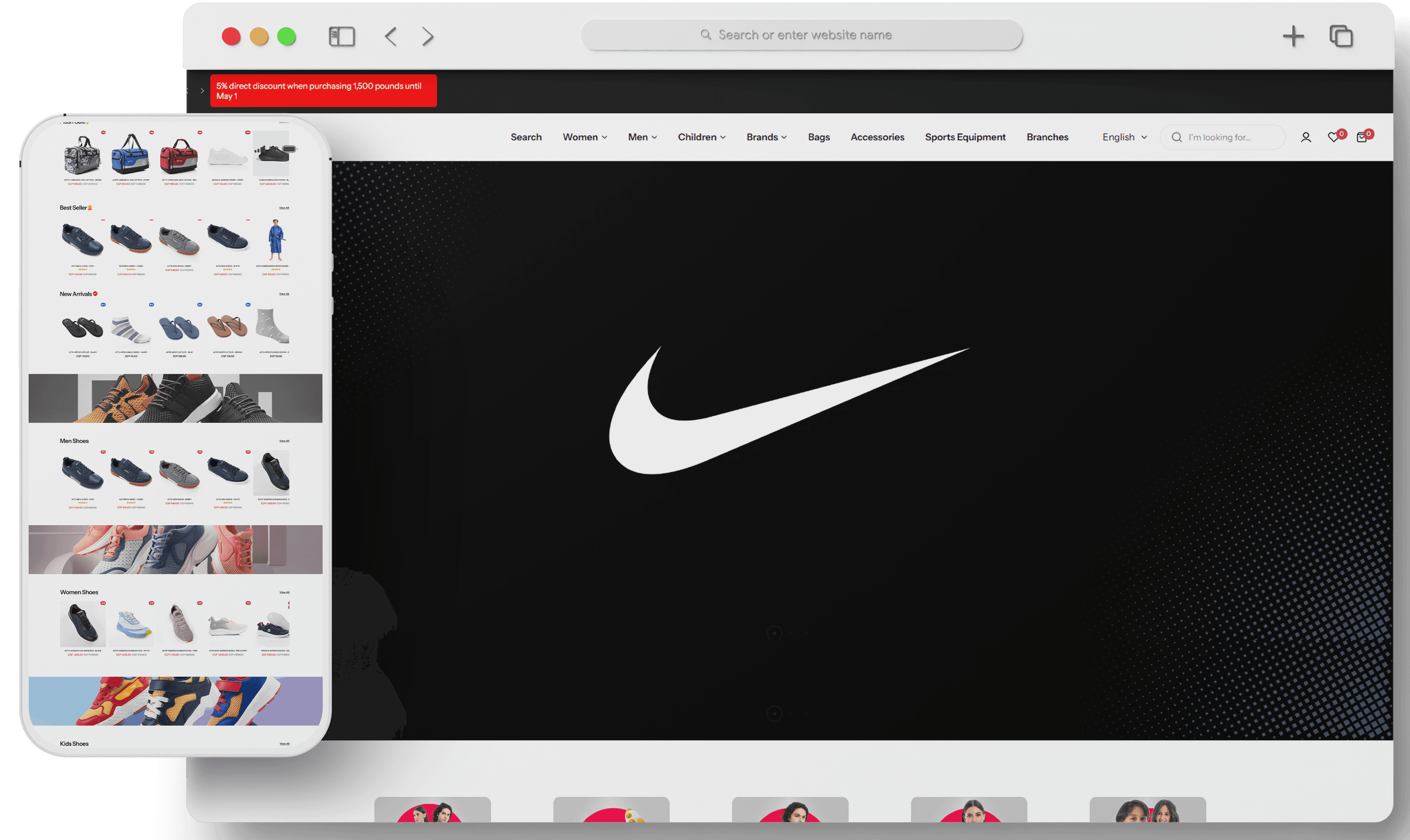تصميم واجهة أنيقة تعكس الهوية الرياضية والعصرية للعلامة.